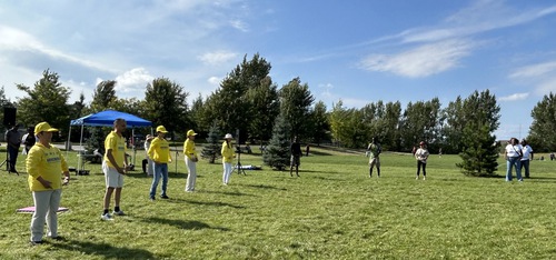 (Minghui.org) Practitioners participated in the Orleans Multicultural Day in Ottawa on September 2 and introduced Falun Dafa to the community. Many people praised their efforts, and some learned the exercises during the event or asked for information on how to practice.