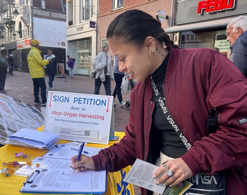 The man said that he was from Croatia and moved to the Netherlands in 1999. He has seen many wars and disasters. He said that the current world status is turbulent. He asked the practitioner whether signatures could stop an evil regime. The practitioner told him that Falun Dafa practitioners are a group of cultivators who follow the principles of Truthfulness, Compassion, and Forbearance, and they have persevered in protesting the persecution that has gone on for 25 years in a peaceful and rational manner, and telling people with their compassion to see through the CCP’s nature. That is very powerful and what the CCP fears most.