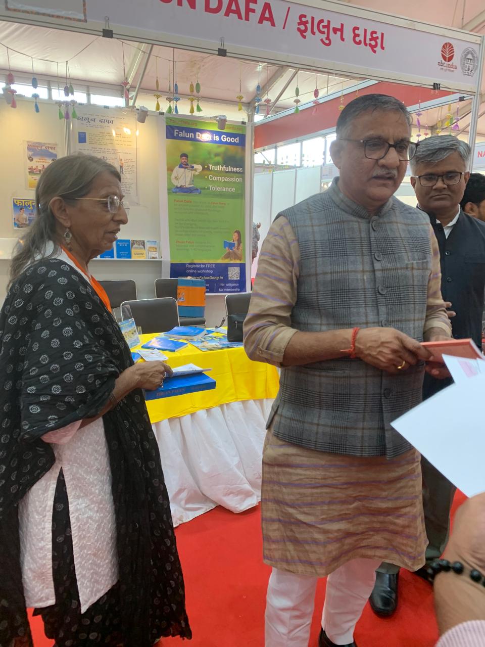 Minister of the State of Gujarat Jagdish Panchal (right) with Falun Dafa practitioners.