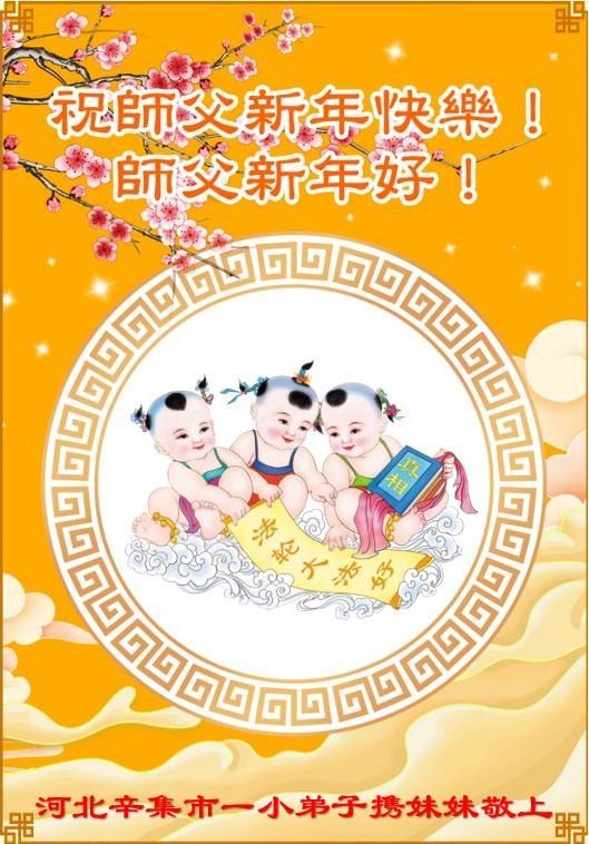 A 10-year-old practitioner in Fenxi County, Shanxi Province, said, “Dear Master, I’m your little Dafa practitioner. I’m ten this year. The new year is coming up. I hope Master smiles often and has a happy New Year, the Year of the Dragon. I thank Master for teaching me the principles of Truthfulness, Compassion, and Forbearance. I listen to the podcasts of little practitioners’ stories every night. I’ve discovered many of my bad habits and I remind myself to change them. Thank you, Master, for allowing me to be your disciple. I want to hold your hand and follow you.”