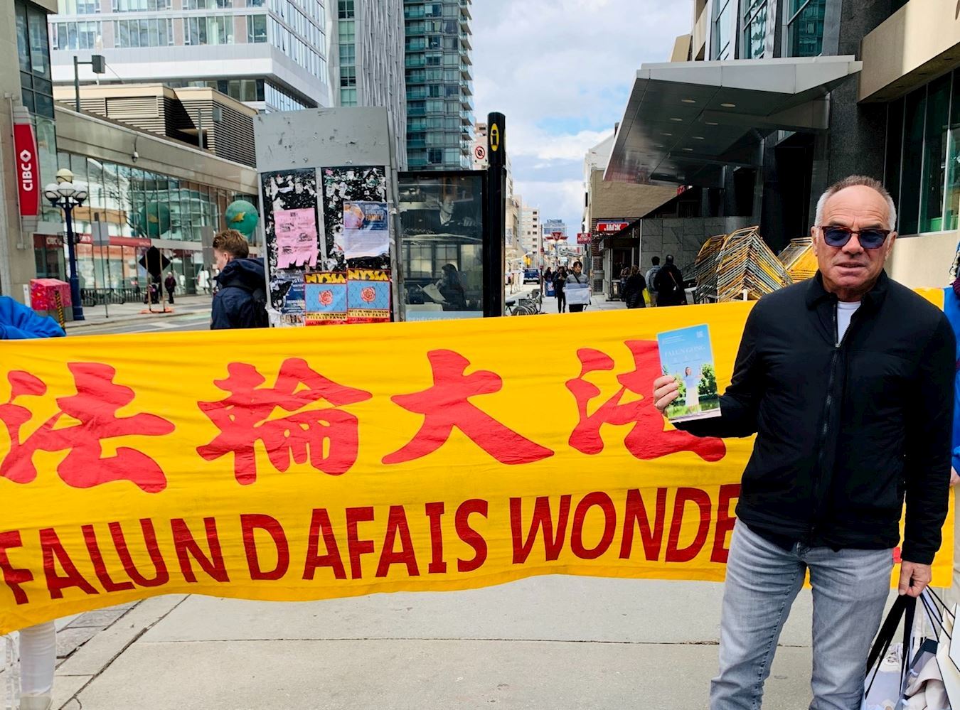 Bobby from Winnipeg saw practitioners holding banners in downtown Toronto. He said, “I know that 25 years ago, the CCP forbade Falun Gong practitioners from meditating. The CCP is like a terrorist organization. It is horrifying. I understand what you are doing.”