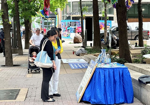 After listening to the practitioner’s introduction, Bryan, a middle-aged man, said that he was interested in cultivating in Falun Gong and wanted to know if there were any practice sites near Plano, where he lived. He was very happy after being provided information about the practice sites and classes in Plano. Later, he went to see the group practice.