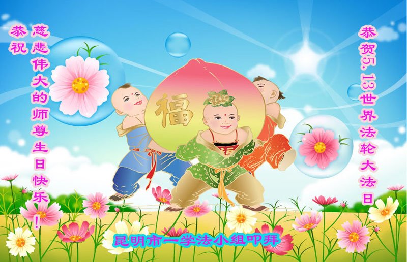Falun Dafa Practitioners from Yunnan Province Wish Revered Master a Happy Birthday and Celebrate World Falun Dafa Day!