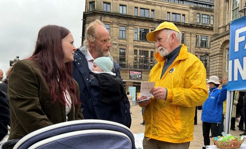 When Derek and his wife passed by the booth, they carefully read the information and discussed it. Afterwards, they asked a practitioner how long he had practiced, what he felt and gained from practicing, the principles of Falun Dafa, and many other questions. They said they appreciated the practice that let one keep a clear mind in this chaotic era.