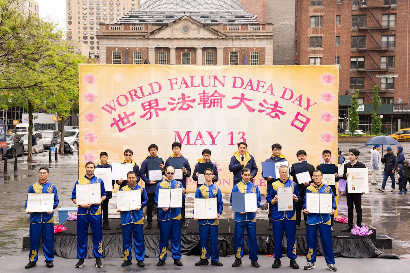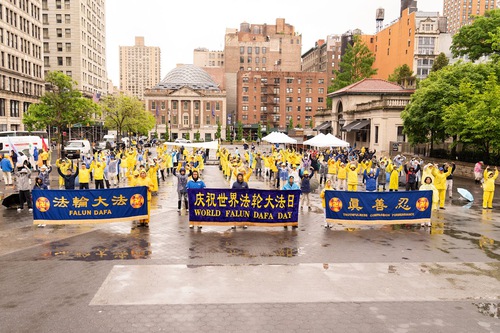 Practitioners held a grand Falun Dafa Day celebration at Union Square.