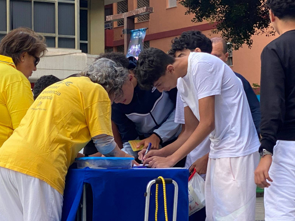 People in Las Palmas called to stop the persecution of Falun Dafa by signing a petition.