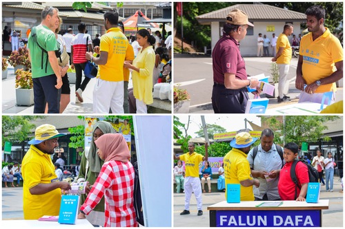 The practitioners introduced the practice and explained the reason why they were here—they want to raise awareness of its persecution in China. Both Kalana and his mother were shocked to learn about the violence committed against innocent practitioners, and how former CCP leader Jiang Zemin launched the persecution because he perceived the practice to be a threat to his own power.