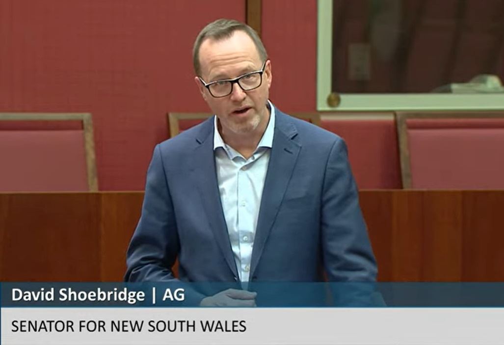 Senator David Shoebridge spoke at the debate on the Amendment on August 21. (Photo courtesy Australia Senate website)
