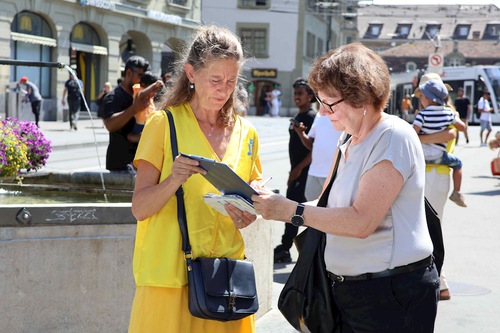 (Minghui.org) “This is an excellent rally held by good people, and it tells people what happened. I think events like this should be held more often,” Daniel said after signing a petition to call for an end to the persecution of Falun Gong (also called Falun Dafa) at Kornhaus Platz in Bern on July 27, 2024.