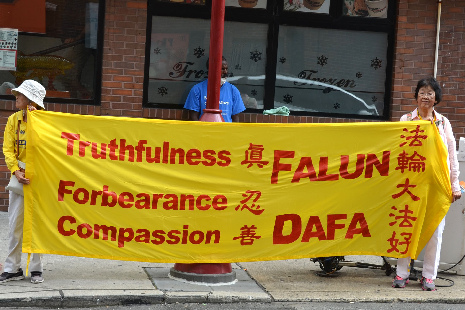 Falun Gong practitioners held a rally in Chinatown on August 31, 2024.