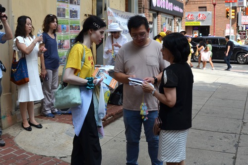Minghui.org) Falun Gong practitioners held a rally in Philadelphia’s Chinatown on August 31, 2024, to expose the brutal persecution of Falun Gong by the Chinese Communist Party (CCP). The rally spotlighted the CCP’s forced organ harvesting of prisoners of conscience. The speakers emphasized that this is a critical issue not only for Chinese people, but also for Americans. Several passersby thanked practitioners for their efforts to expose these atrocities and said they would help pass on the information to more people.