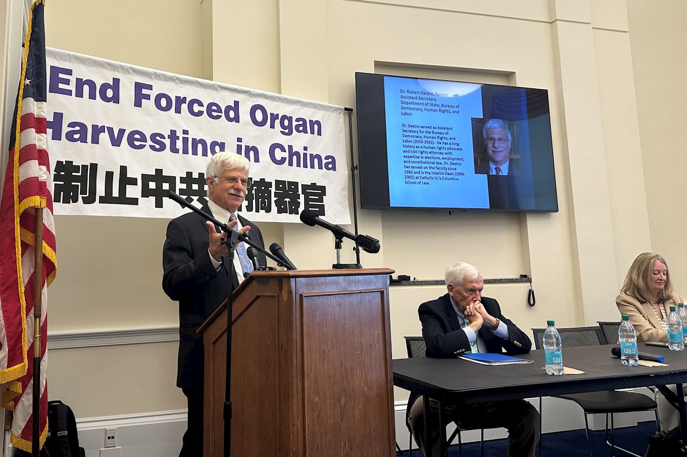 Robert Destro, former Assistant Secretary of State, addressed the press conference.