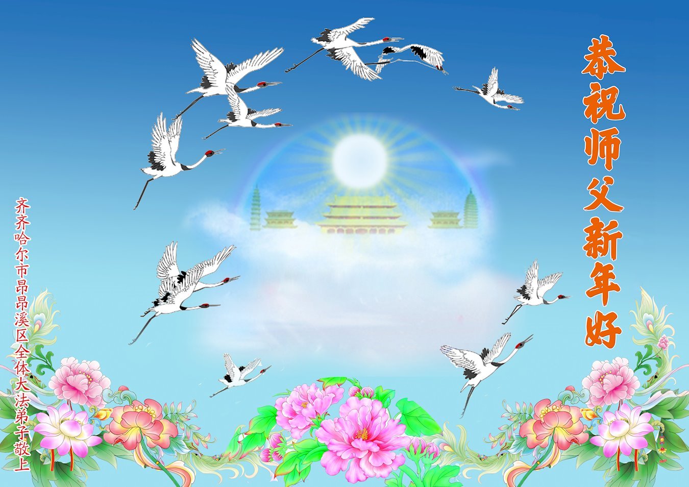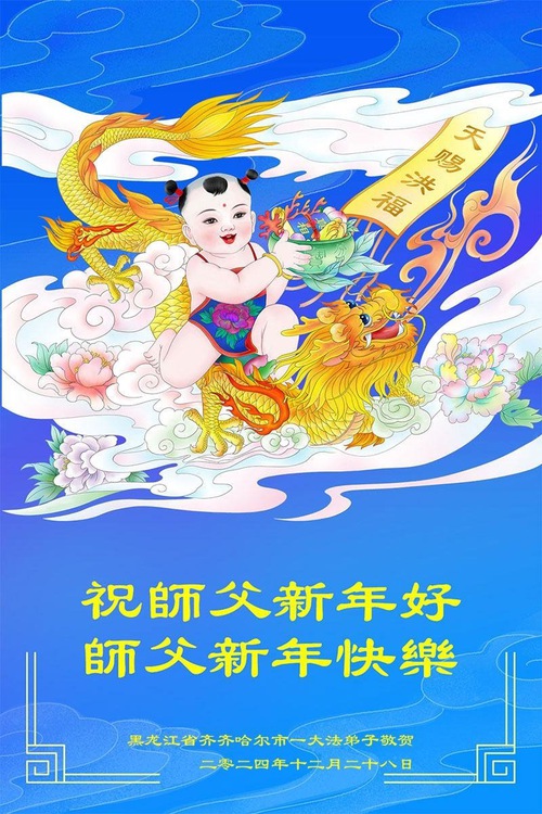 Falun Dafa Practitioners from Qiqihar City Respectfully Wish Master Li Hongzhi a Happy New Year (20 Greetings)