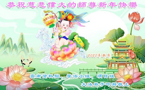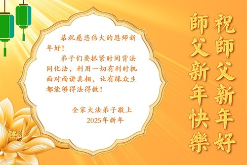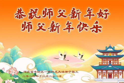 Another group in Pingdingshan City, Henan Province, said, “We study Dafa’s teachings together. We are all in our 60s, yet we enjoy great health thanks to Dafa’s blessings. At the special occasion of the 2025 New Year, we sincerely wish Master Li a Happy New Year!”