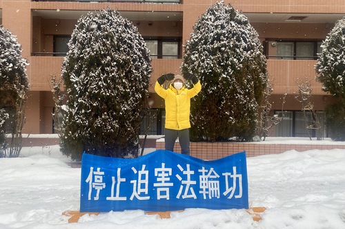 Practitioners peacefully protested in front of the Chinese Consulate in Sapporo on the evening of December 31.