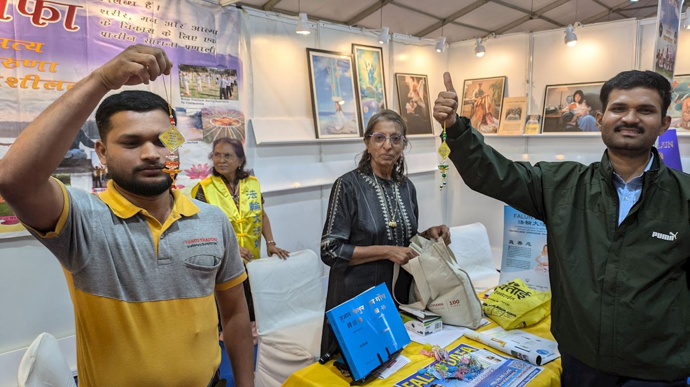 Many teachers and professors who visited the booth invited practitioners to visit their schools or colleges to conduct Falun Dafa workshops. Several people registered for the free online Falun Dafa classes in addition to purchasing the books Falun Gong and Zhuan Falun in Hindi and Marathi.