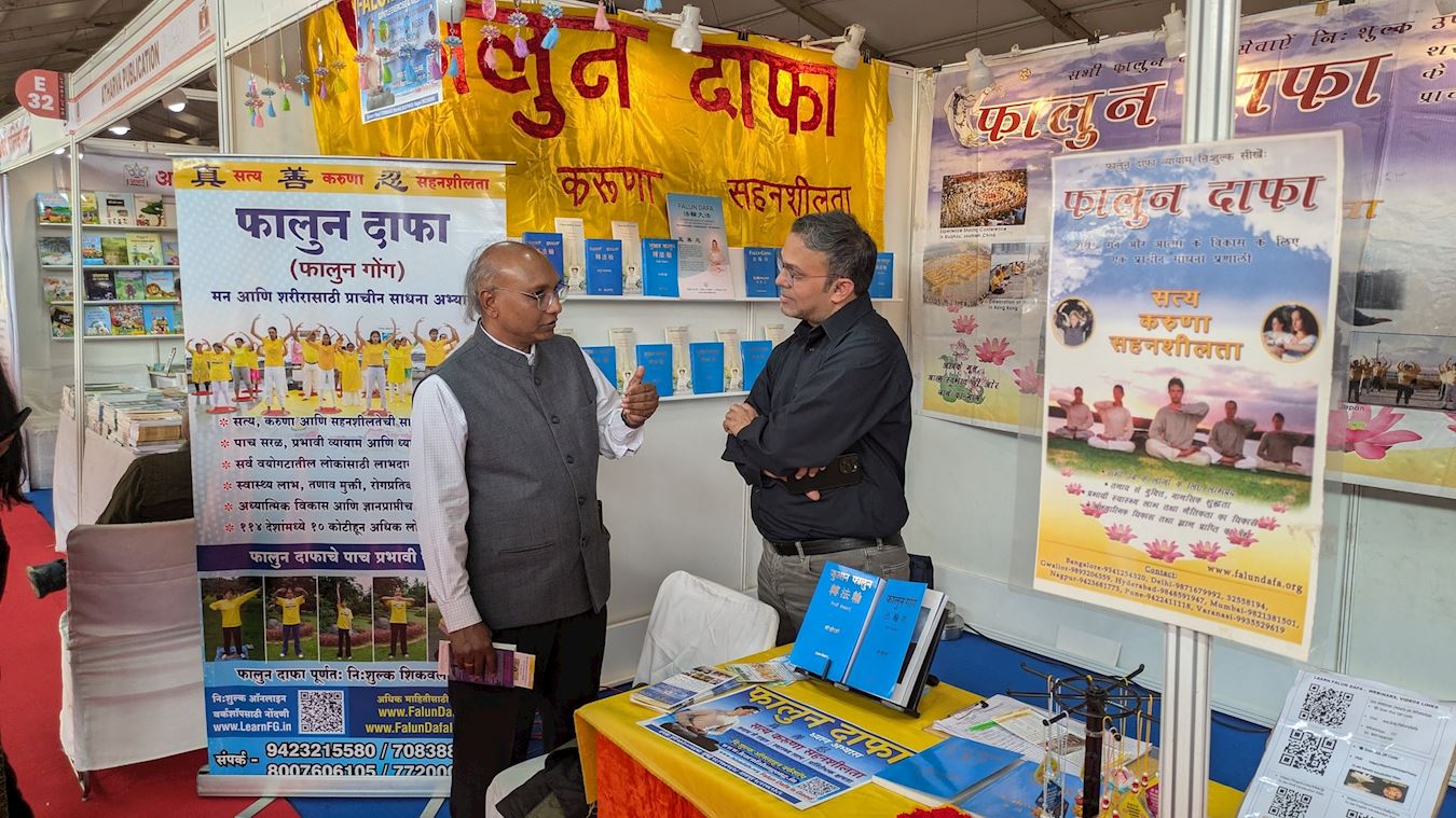 Practitioners had the opportunity to talk about Falun Dafa to many renowned personalities like Rajesh Pande, the chief organizer of the Pune Book Festival; Milind Marathe, the chairman of National Book Trust (NBT); former IPS officer Ravindranath Patil; and Mukund Lele, the chief editor of a monthly magazine of Sakal MediaGroup.