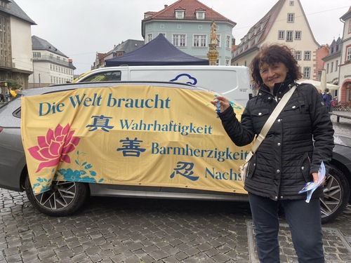 After Michaele signed both petitions, she said that she knew too little about the CCP’s persecution of Falun Dafa practitioners, “I did not expect that so many people are persecuted in China and they are doing such large scale organ transplants. The CCP is controlling people. It’s good that practitioners [outside China] collect signatures to end the persecution. The German people should learn about the truth and take action.” She said she hopes more people can take a stand and object to this persecution. She also hopes the situation in China changes soon, so that people who live there can lead a truly free life.