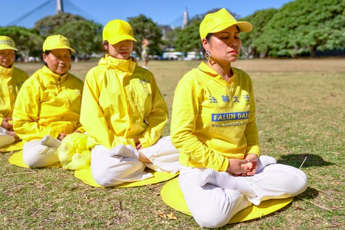David Kneipp from South Australia said he’s participated in similar activities before. He said, “It is very good to be with a large group of practitioners and participate in this character formation. It requires everyone’s coordination and cooperation. Everyone did well today. Even though it’s hot, it’s a good cultivation opportunity.”