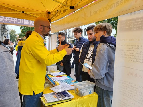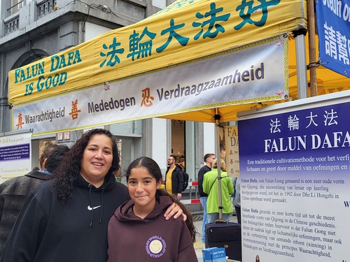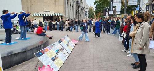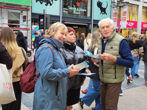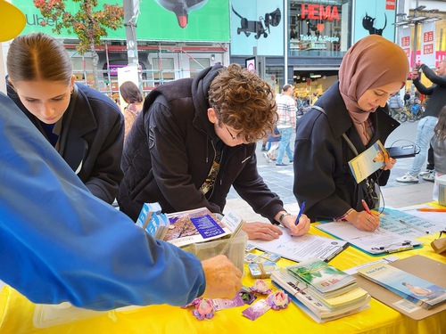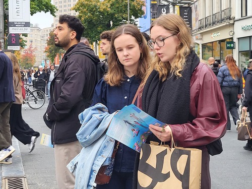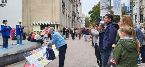 (Minghui.org) Practitioners introduced Falun Dafa and informed people about the Chinese Communist Party’s (CCP) persecution during an event in the Meir Shopping District in Antwerp, Belgium, on October 11, 2025. Many passersby stopped to learn about Falun Dafa and expressed their support to end the persecution.
