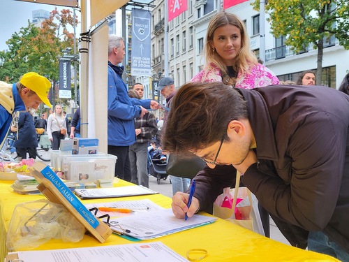 People in Antwerp support Falun Dafa practitioners’ call to stop the CCP’s persecution.