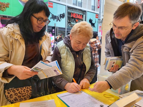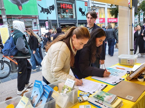 Rogier and Eva watched as practitioners did the exercises and them signed the petition. They said they were opposed to the persecution and they treasure freedom of belief.