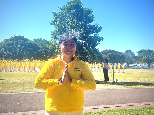 She participated in the practitioners’ parade in the center of Sydney the day before. “So many people watched the parade. Yesterday, people gave us a Heshi [pressing the palms together in a gesture of respect] and a thumbs up. They seemed very happy. I think it is because they’ve known about the persecution by China’s government for a long time, and they support human rights, and they know Falun Dafa is good. Really good.”