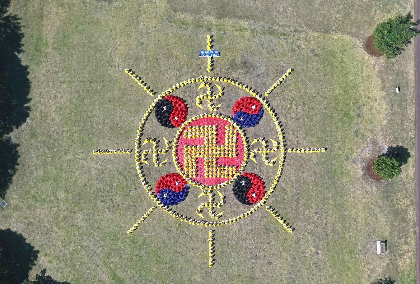 Practitioners did the exercises and formed the Falun emblem in Jubilee Park.