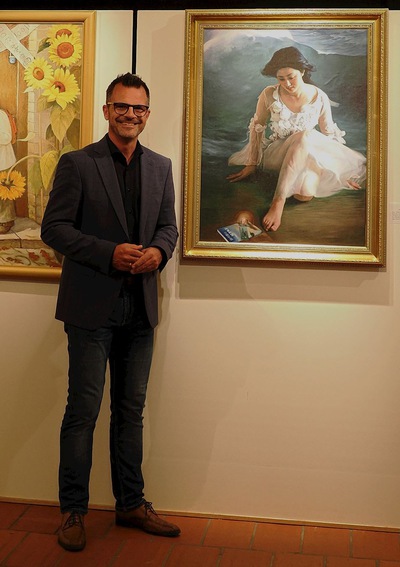 Mayor Jurgen Sorré in front of his favorite painting “Who am I?” at the opening ceremony on September 29