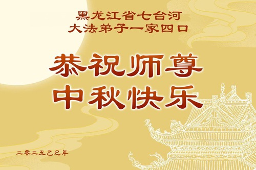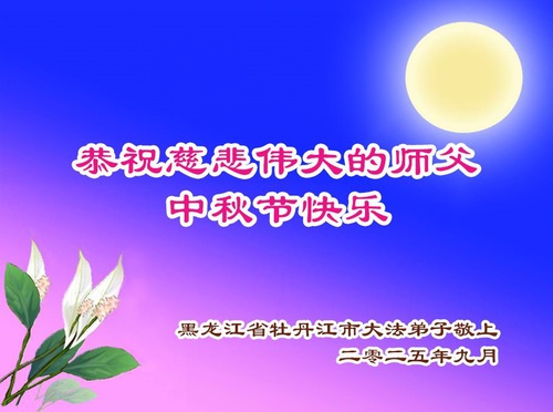 Falun Dafa Practitioners from Heilongjiang Province Respectfully Wish Master Li Hongzhi a Happy Mid-Autumn Festival (19 Greetings)
