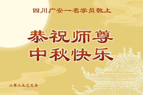Falun Dafa Practitioners in Sichuan Province Respectfully Wish Master Li Hongzhi a Happy Mid-Autumn Festival (21 Greetings)