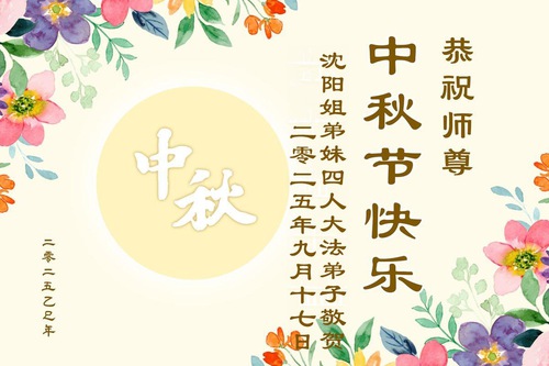 Falun Dafa Practitioners in Shenyang City Respectfully Wish Master Li Hongzhi a Happy Mid-Autumn Festival (18 Greetings)