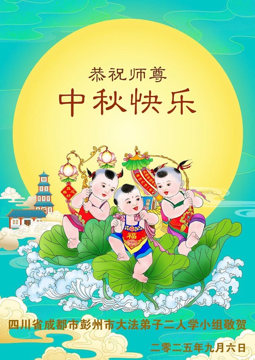 Falun Dafa Practitioners in Chengdu City Respectfully Wish Master Li Hongzhi a Happy Mid-Autumn Festival (18 Greetings)