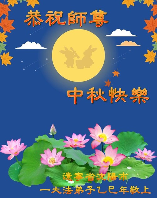 Falun Dafa Practitioners in Shenyang City Respectfully Wish Master Li Hongzhi a Happy Mid-Autumn Festival (18 Greetings)