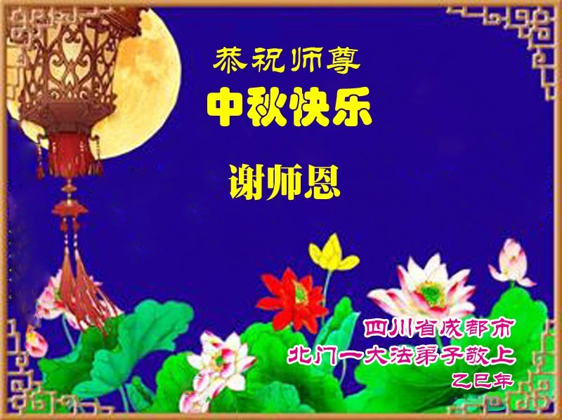 Falun Dafa Practitioners in Chengdu City Respectfully Wish Master Li Hongzhi a Happy Mid-Autumn Festival (18 Greetings)