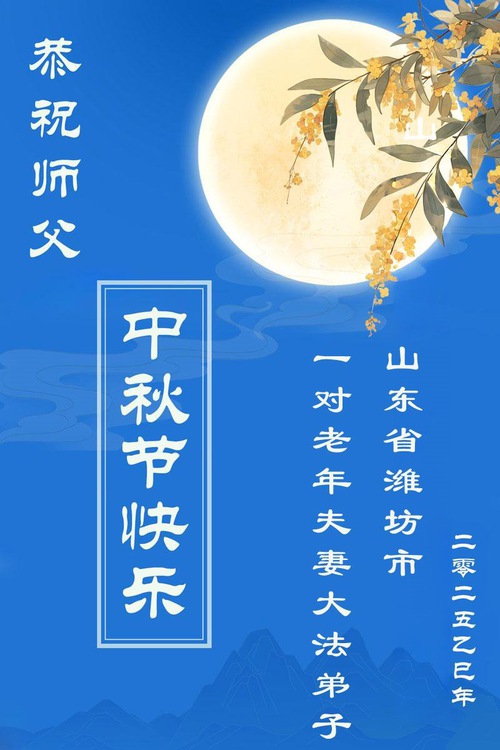 Falun Dafa Practitioners in Weifang City Respectfully Wish Master Li Hongzhi a Happy Mid-Autumn Festival (20 Greetings)