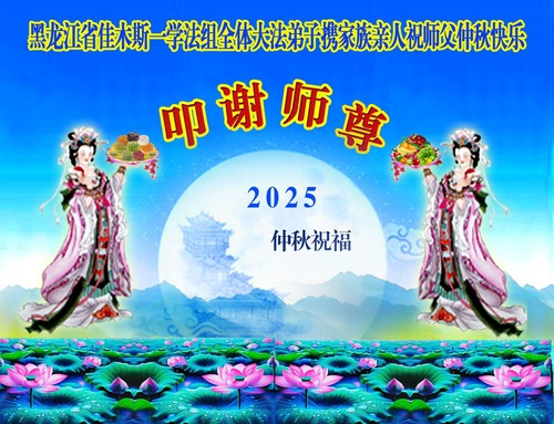 Falun Dafa Practitioners in Jiamusi City Respectfully Wish Master Li Hongzhi a Happy Mid-Autumn Festival (18 Greetings)