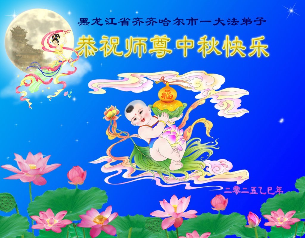 Falun Dafa Practitioners in Qiqihar City Respectfully Wish Master Li Hongzhi a Happy Mid-Autumn Festival (18 Greetings)