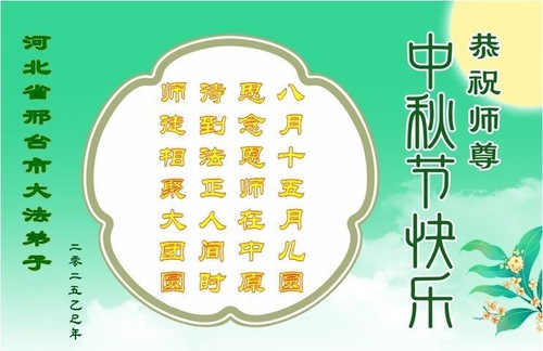 Falun Dafa Practitioners from Hebei Province Respectfully Wish Master Li Hongzhi a Happy Mid-Autumn Festival (18 Greetings)