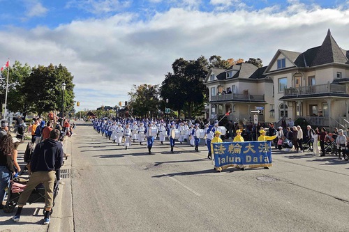 (Minghui.org) The Tian Guo Marching Band from Toronto was invited to participate in the annual Kitchener-Waterloo Oktoberfest Thanksgiving Day Parade on October 13, 2025.