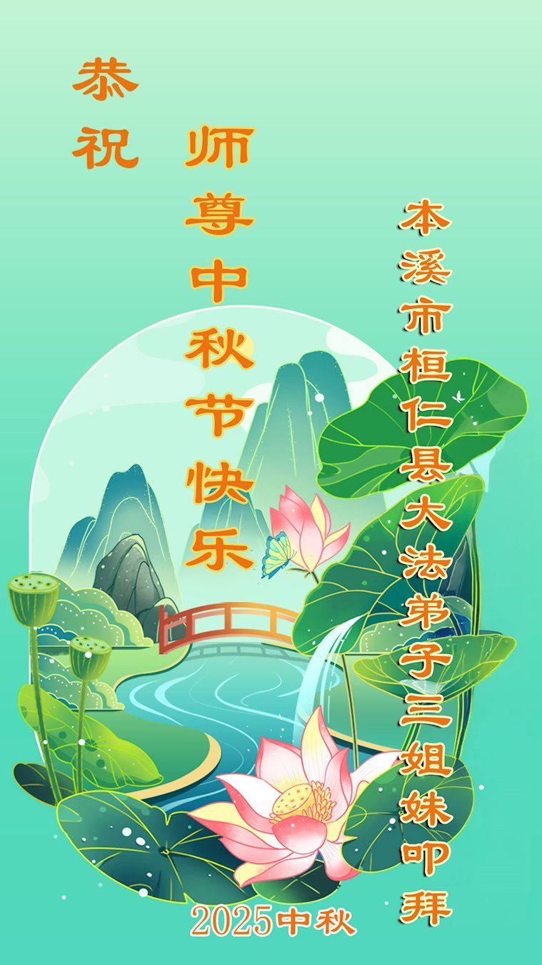 Falun Dafa Practitioners from Benxi City Respectfully Wish Master Li Hongzhi a Happy Mid-Autumn Festival (18 Greetings)
