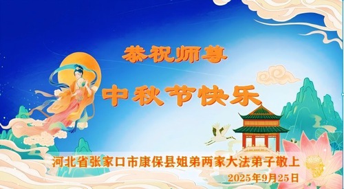 Falun Dafa Practitioners from Zhangjiakou City Respectfully Wish Master Li Hongzhi a Happy Mid-Autumn Festival (19 Greetings)