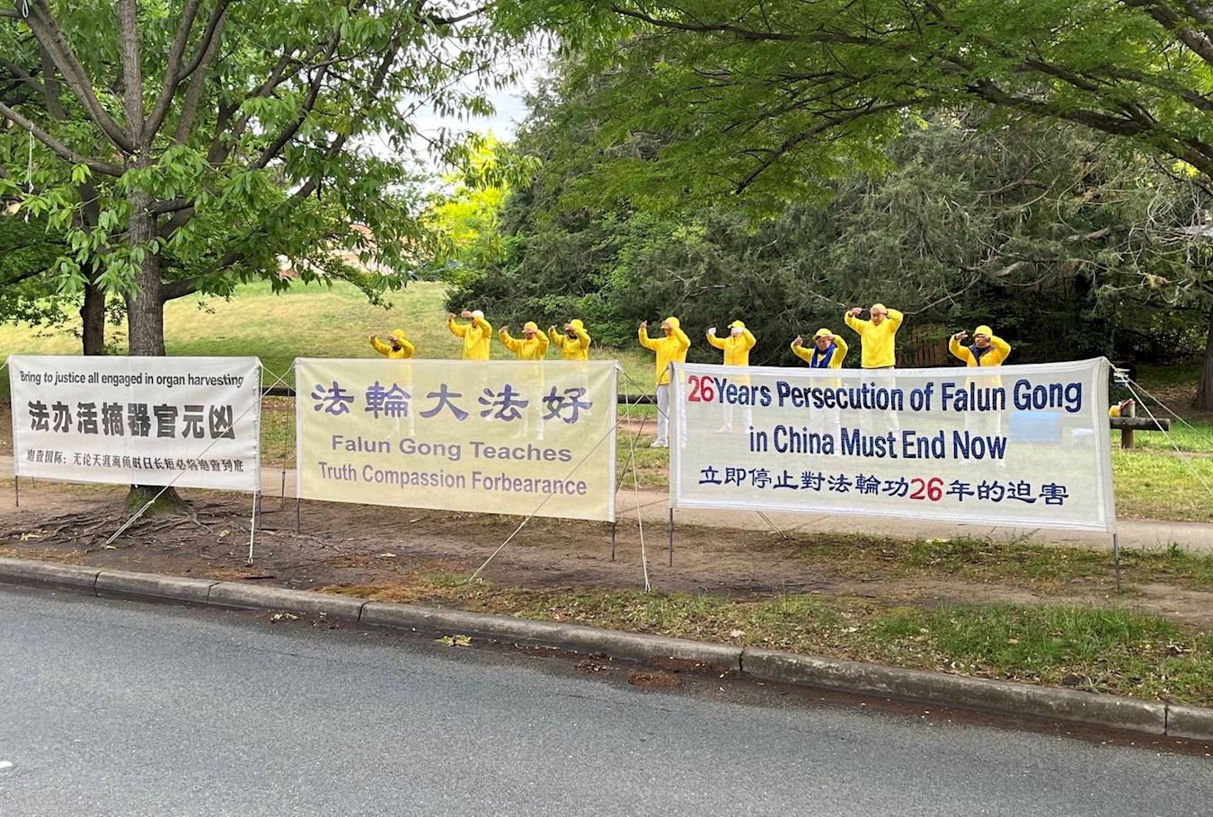 During the morning rush hour for several days in a row practitioners held banners, demonstrated the five sets of exercises, and collected signatures in downtown Canberra to stop organ harvesting.