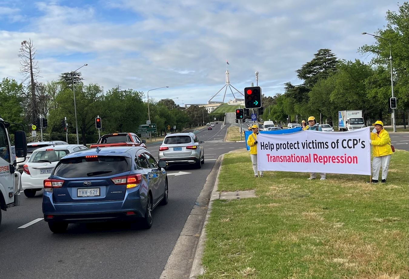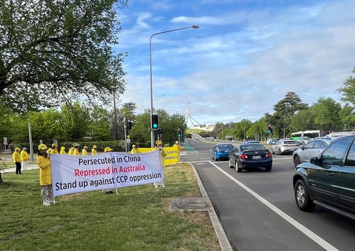 (Minghui.org) Falun Gong practitioners from various parts of Australia gathered in Canberra, the capital city, outside Parliament House, on October 28, 2025, for a peaceful rally. This is one of a series of activities held over four days in Canberra, beginning on Monday October 27th, to expose organ harvesting and the escalating transnational repression by the Chinese Communist Party (CCP) that targets government organizations, federal members, and the public.