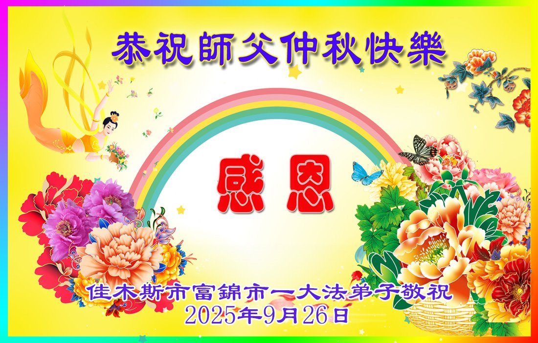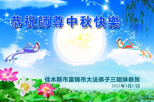 Falun Dafa Practitioners in Jiamusi City Respectfully Wish Master Li Hongzhi a Happy Mid-Autumn Festival (18 Greetings)