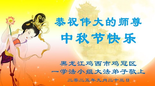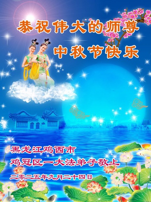 Falun Dafa Practitioners in Jixi City Respectfully Wish Master Li Hongzhi a Happy Mid-Autumn Festival (21 Greetings)