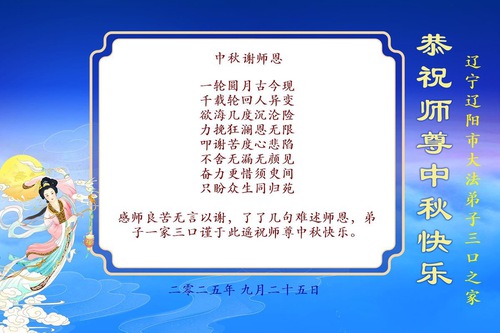 Falun Dafa Practitioners in Liaoning Province Respectfully Wish Master Li Hongzhi a Happy Mid-Autumn Festival (19 Greetings)