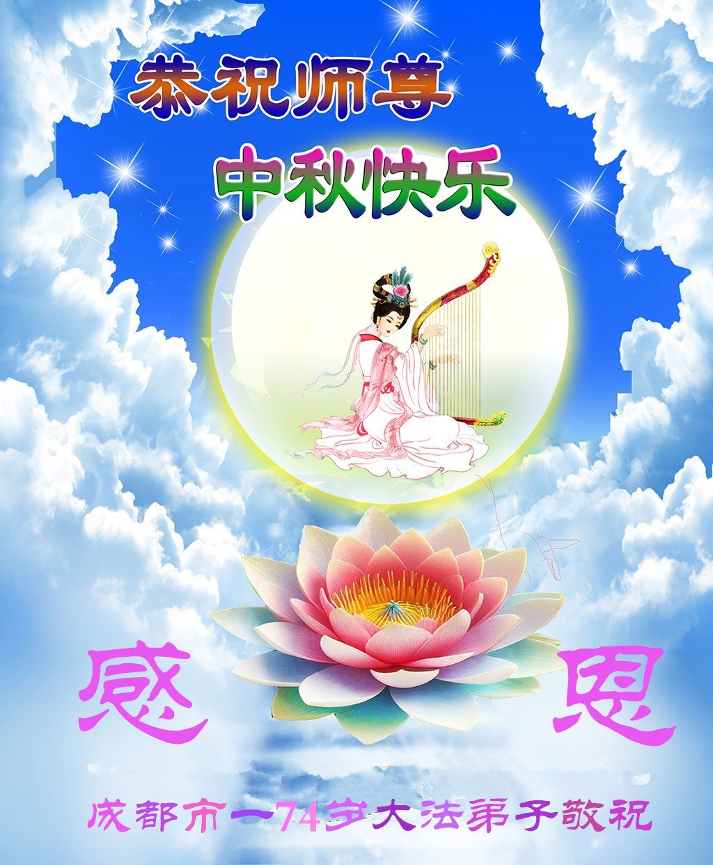 Falun Dafa Practitioners from Chengdu City Respectfully Wish Master Li Hongzhi a Happy Mid-Autumn Festival (19 Greetings)