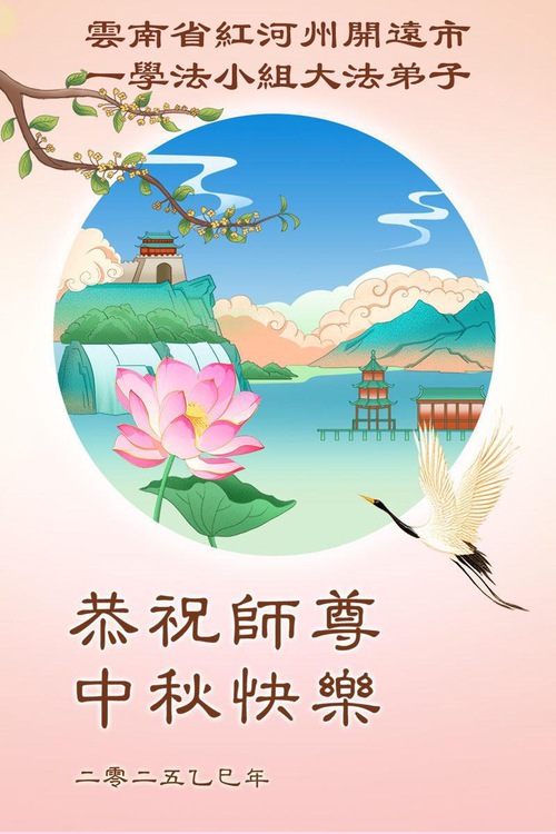 Falun Dafa Practitioners in Yunnan Province Respectfully Wish Master Li Hongzhi a Happy Mid-Autumn Festival (18 Greetings)