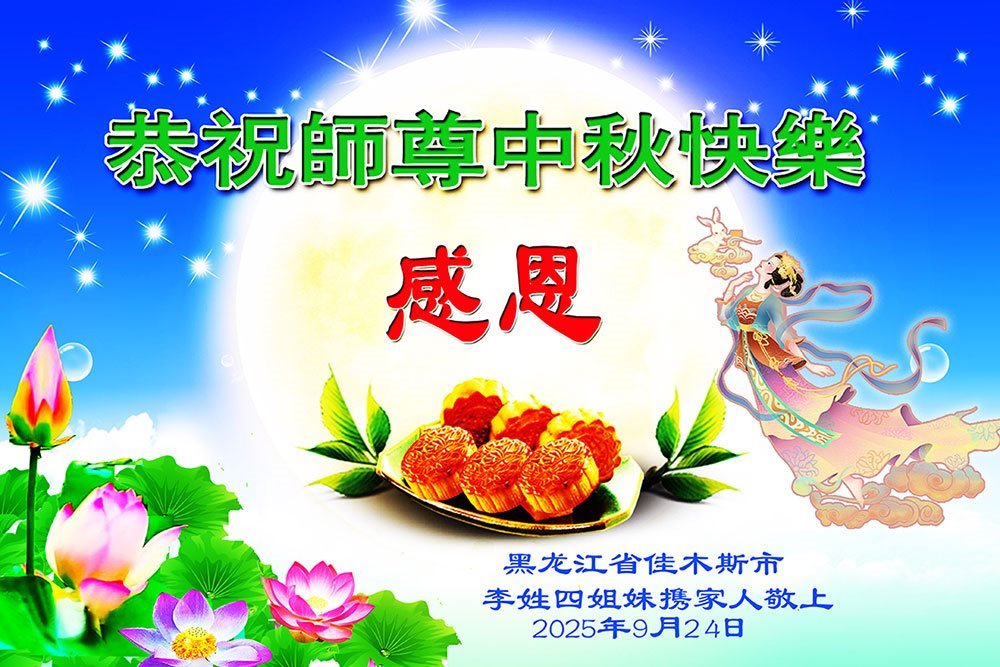 Falun Dafa Practitioners from Jiamusi City Respectfully Wish Master Li Hongzhi a Happy Mid-Autumn Festival (20 Greetings)